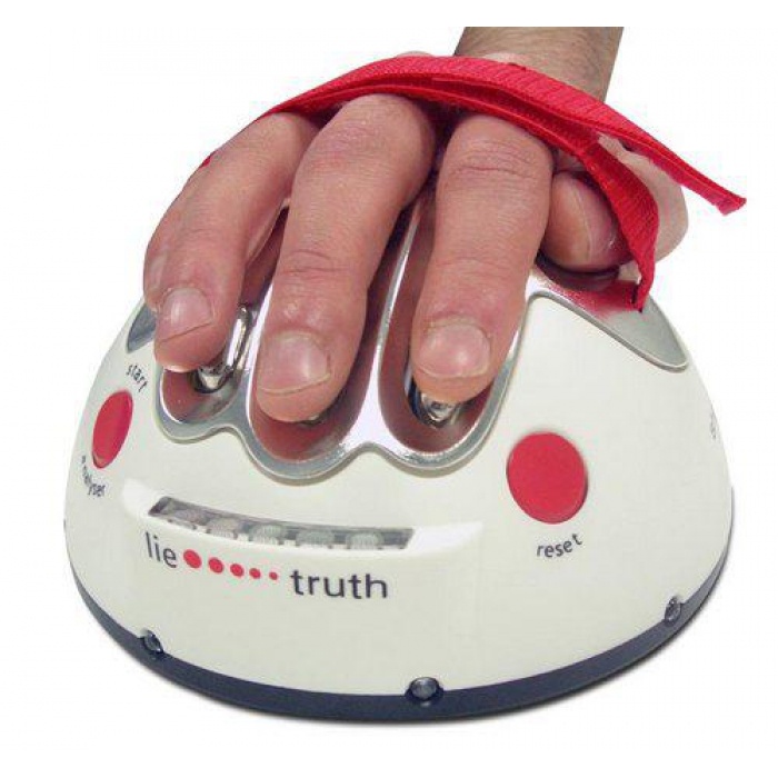 Принцип действия модели «Детектор лжи» заключается в том, что если тестируемый человек, положивший ладонь на устройство, говорит неправду, то его слегка ударяет гальваническим (поверхностным) током, безвредным для здоровья человека. В этом устройстве встроено два датчика, которые фиксируют изменение температуры тела и пульса, которые зачастую меняются, если человек говорит неправду. Необычный сувенир может стать отличным подарком для друзей или коллег по работе.