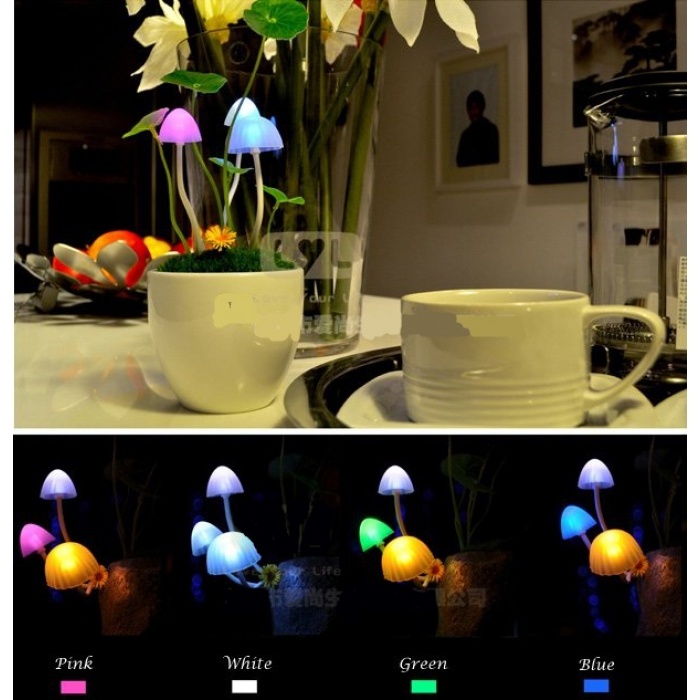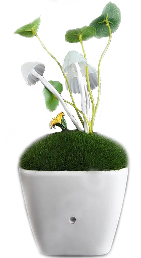 Оригинальный ночник в виде горшочка со мхом, грибами, листьями и цветком. Элементы ночника исполнены в стиле декораций растений к фильму «Аватар». Каждый элемент ночника (грибы, растения) можно расположить по своему вкусу.