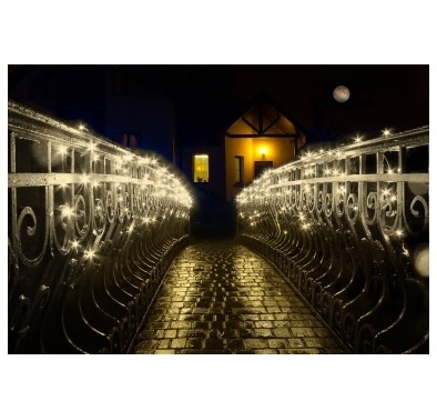 Гирлянда для декоративной подсветки ландшафта в саду: новогодних елок, уличных деревьев и кустарников, лужаек и дорожек, для украшения фасада вашего дома, подсветки бассейнов и водоемов в любую погоду. Создана по самой последней технологии — световые микро-кристаллы непосредственно размещены на тончайшей серебренной гибкой и прочной нити и, в силу этого, обладают свойством «невидимки». На декорируемом объекте виден только свет!