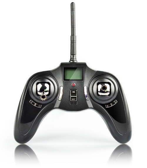 С ним удобно играть и проводить свободное время и взрослым, и детям. На корпусе квадрокоптера имеются четыре светодиода, которые светятся, когда модель активирована и готова к запуску. Пульт ДУ выполнен в форме игрового джойстика, оснащен LCD-дисплеем.
