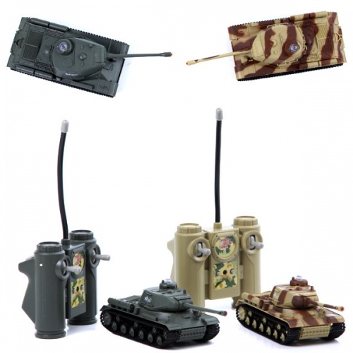 В комплекте поставляются 2 танка на различной частоте. Управление производится при помощи частотного пульта управления.