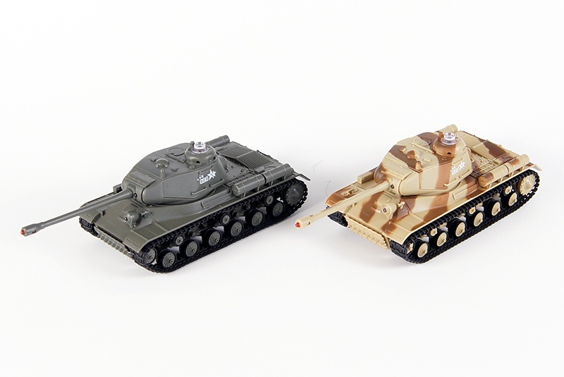 Радиоуправляемый танковый бой ИС-2 отлично управляется с помощью дистанционного пульта радиоуправления. Он выполняет движения вперед-назад, влево – вправо, может преодолевать всякие препятствия. Танки имеют звуковую имитацию работающего двигателя. Башня и ствол пушки поворачивается, каждый выстрел сопровождается отдачей и звуковым сигналом.