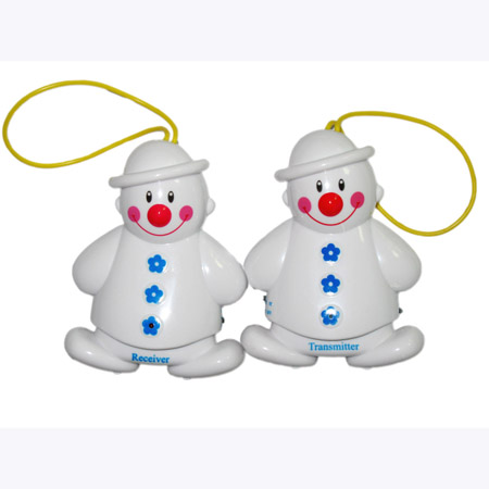 В комплекте: блок матери и блок ребенка. При появлении звука в комнате ребенка (где устанавливается передатчик) - приемник начинает воспроизводить заранее записанные (на заводе) звуки детского плача. Дальность между блоками до 80 м. (на открытом пространстве). Два уровня чувствительности. Есть режим ТЕСТ.