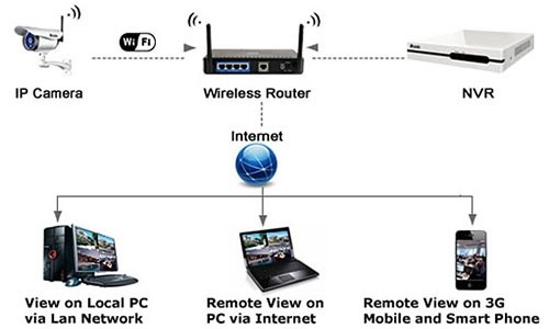 В ресивере имеется Ethernet-порт, к которому подключается Wi-Fi роутер, принимающий сигналы от беспроводных камер. Роутер передает сигнал на ПК (в локальную сеть), откуда видео может транслироваться в Интернет. Получить доступ к информации можно только по паролю, поэтому возможность несанкционированного просмотра полностью исключена. Видеокомплект адаптирован для работы практически со всеми современными устройствами, благодаря чему Вы сможете управлять им с любого смартфона, планшета или ПК из любой точки мира: