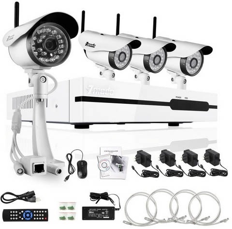 Четыре камеры высокого разрешения, записывающие видео в цвете, являются основными элементами системы видеонаблюдения Wi-Fi "Zmodo Беспроводной". Специальные передатчики дают возможность транслировать изображение на расстояние до 150 м. Прием видеосигнала осуществляется Wi-Fi роутером (докупается отдельно), который транслирует его на ресивер и в локальную сеть.