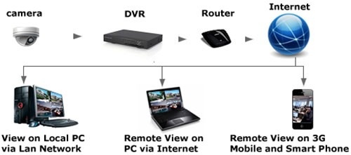 При подключении к Интернету изображение будет доступно в любой точке земного шара. Более того, Вы сможете не только просматривать и записывать видео со всех камер, но и осуществлять настройку основных функций системы и параметров видеозаписи, а также предавать видеоматериалы по локальной сети или в Интернет.