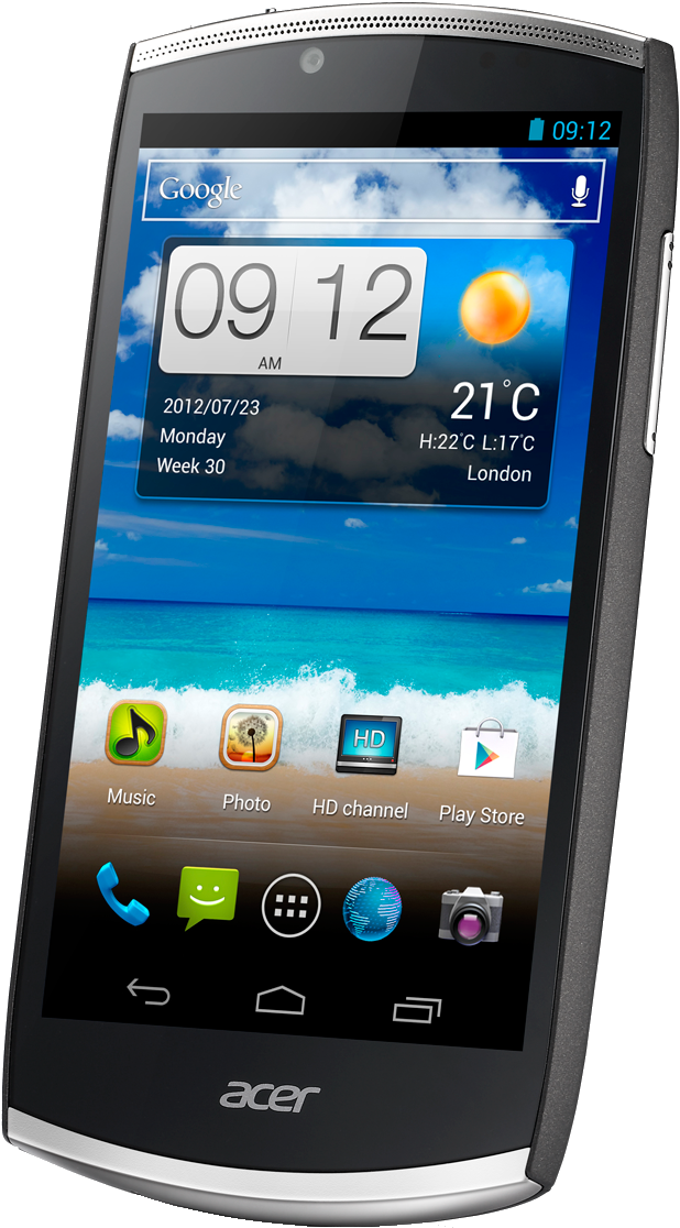 Acer CloudMobile работает на базе быстрой операционной системы Android. Версия IceCream Sandwich удобна в использовании и радует многофункциональностью. Поверх стандартного интерфейса компания Acer установила собственную оболочку. Незначительные изменения имеют достаточно полезный характер. С новым интерфейсом работать в Android стало еще удобней. Рабочий стол, как и прежде, состоит из пяти экранов, которые прокручиваются горизонтально. На любом из столов вы может с легкостью создать любую папку, перетащив одну иконку приложения на другую. Ниспадающая панель в новой оболочке стала более информативной. Она состоит из нескольких разделов, где вы можете легко управлять медиапроигрывателем или перейти к списку самых востребованных функций.