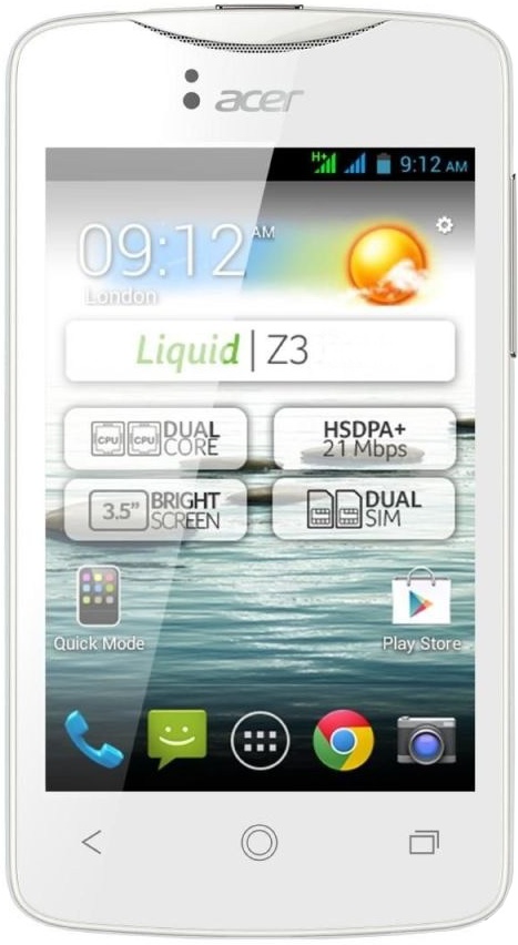 Acer Z3 Liquid базируется на современной платформе, в основе которой лежит 1000 МГц процессор с двумя ядрами MediaTek MTK6572 и графический ускоритель Mali-400 MP. Соответственно, здесь реализованы классические беспроводные интерфейсы 3G, Wi-Fi «n» с функцией прямого соединения Direct, Bluetooth. Слушайте свою любимую музыкальную коллекцию, которую можно хранить на карте памяти microSD неограниченной емкости, при этом подключив любые наушники через 3.5 мм аудиоразъем. А благодаря наличию GPS вы кратчайшим путем доберетесь в самые потайные места нашей планеты, да еще и без пробок по дороге.