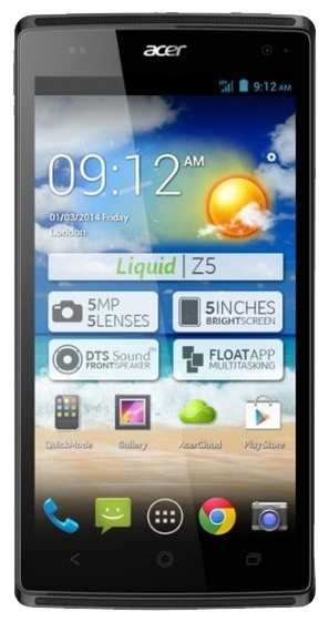 Удобство использования. Классический моноблочный корпус, в виду отсутствия подвижных элементов, надежен и прочен. Комфортный вес и удобная форма позволяют крепко удерживать Acer Liquid Z5 в руке. Большая диагональ красочного пятидюймового экрана расширяет возможности пользователя при работе с самыми разнообразными приложениями. Этому способствует и комфортное разрешение экрана 854x480 точек.