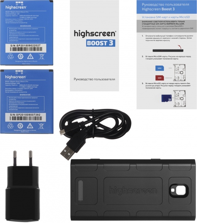 Highscreen Boost 3 входит в фирменную линейку долгоиграющих смартфонов. В комплекте с аппаратом поставляются два аккумулятора разной емкости (3000 мАч и 6000 мАч), каждый со своей задней крышкой. Моделируйте оптимальные габариты и выбирайте подходящую емкость аккумулятора в зависимости от целей и интенсивности использования смартфона.
