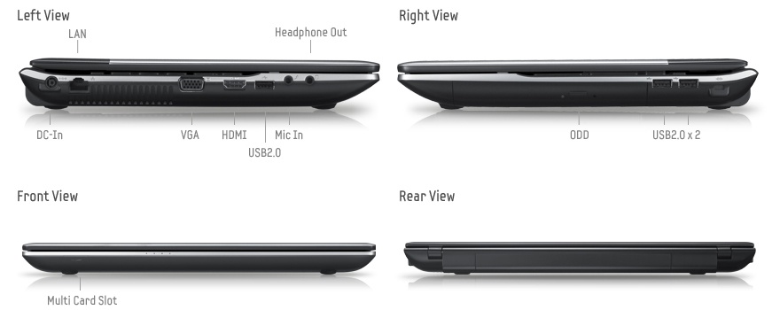 | USB 2.0x3, VGA (D-Sub), HDMI, вход микрофонный, выход аудио/наушники, LAN (RJ-45) | |