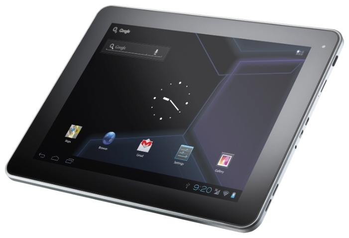9.7" планшет на платформе Allwin A10, оснащенный IPS-экраном и сенсорной панелью с 5 точками касания, двумя камерами и батареей повышенной емкости. Тонкий 9-миллиметровый корпус. Операционная система Android 4 и поддержка мобильных приложений Google. Особенности