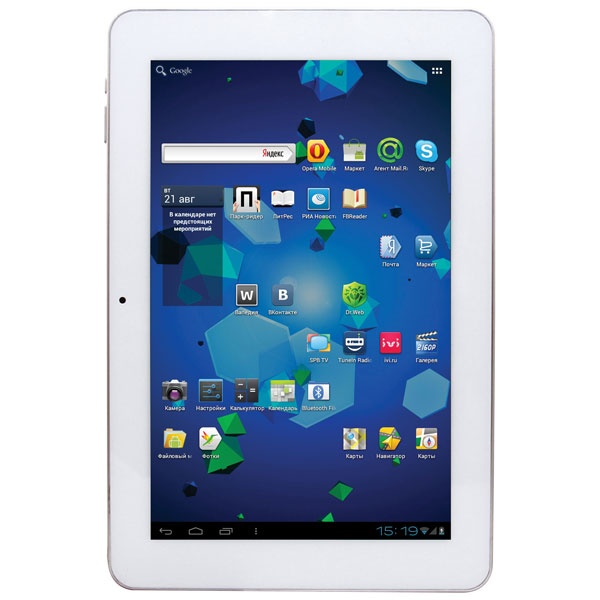 Ritmix RMD1025 выделяется среди “одноклассников” прежде всего своим экраном, выполненным по самой продвинутой на сегодняшний день технологии – IPS. Конечно, управление основано на емкостном сенсоре. Это означает на порядок лучшую реакцию на касания пальцами. Можно просто слегка дотрагиваться до экрана, водить по нему, выписывая жесты, использовать все модные “фишки” мультитача. Основные характеристики экрана: 10.1-дюймовая IPS-матрица WXGA разрешения (1280х800 точек) с пропорциями 16:10. Картинка радует живыми цветами, её отлично видно даже под прямыми солнечными лучами. Дисплей оснащен датчиками освещенности и положения. И если с “лица” гаджет “смотрит” привычным глянцевым дисплеем, то с тыла он щеголяет матовой крышкой под металл, которая не только солидно и дорого смотрится, но и приятна на ощупь, а также практична – на ней не остаются следы от рук и маскируются царапины.