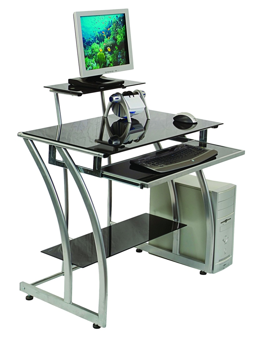 Стол идеально подойдёт как для компьютера, так и для ноутбука. GD-010-Black современный, стильный, эргономичный компьютерный стол-стойка в стиле «хай-тек». Опоры стойки металлические, это делает стол для компьютера относительно лёгким. Под столешницей есть выдвижная панель для клавиатуры и есть место для системного блока. Над столешницей есть полка под монитор.