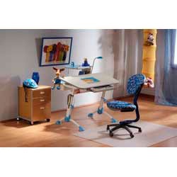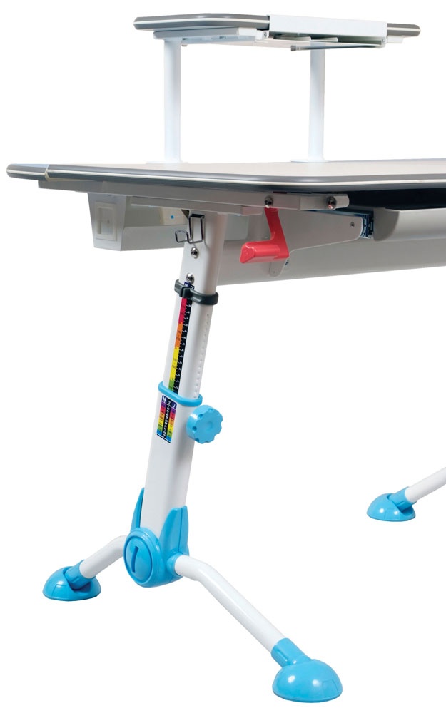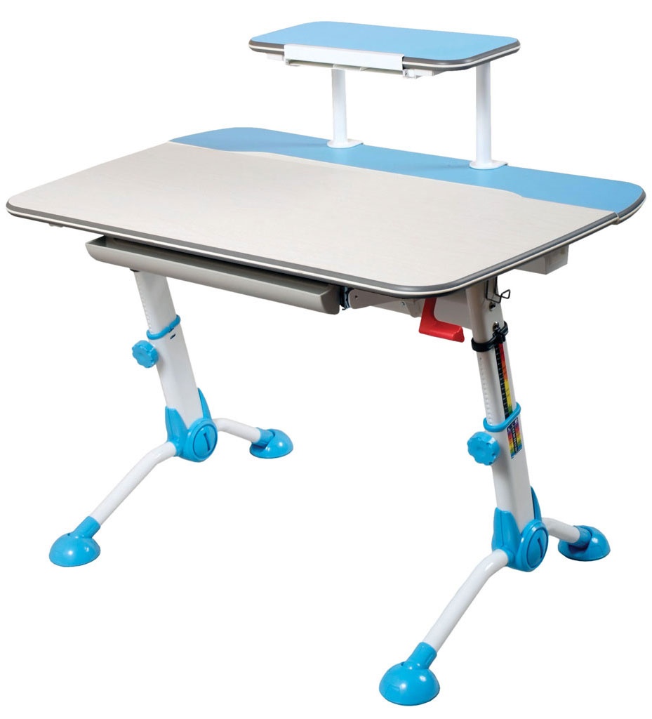 Идеальный стол для учёбы, высота столешницы стола регулируется и стол может расти вместе с Вашим ребёнком. Можно регулировать и угол наклона столешницы. Широкая и глубокая столешница позволит разместить книги, тетради, учебные пособия и даже ноутбук или компьютер. Под столешницей есть выдвижной ящик для канцелярских принадлежностей - мечта любого школьника. Над столешницей есть полка с выдвижной подставкой для книг. Сзади стола есть кабель - канал, который позволит скрыть провода.