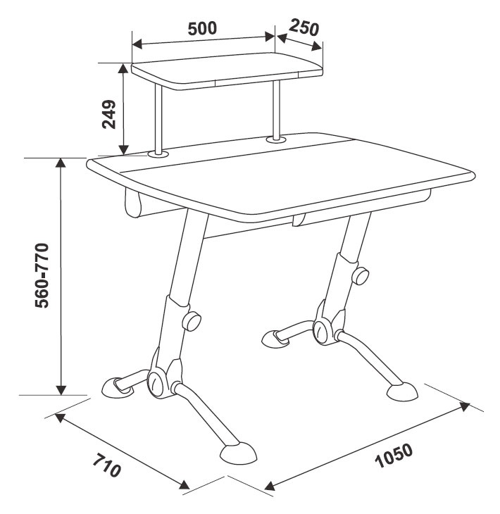 | Изменение высоты | от 56 до 77 см и угла наклона до 18 градусов столешницы |