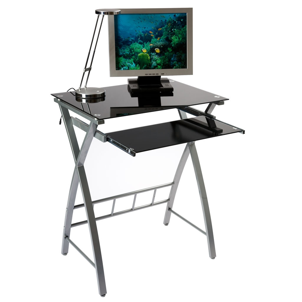 Компактный компьютерный стол из чёрного закалённого стекла.