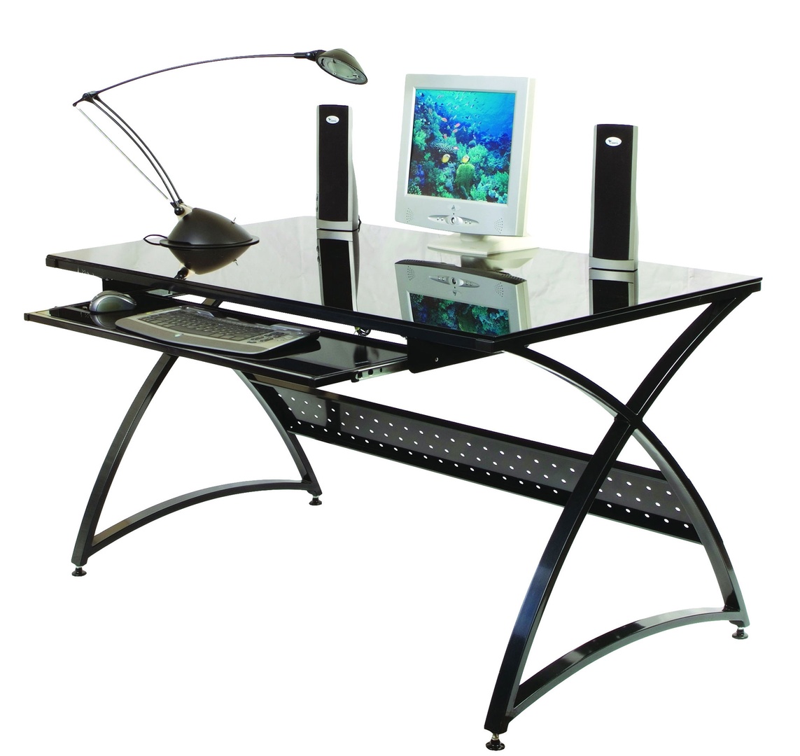 Тёмная столешница из стекла, диагональные металлические опоры, обеспечивающие надежность конструкции, позволяют поместить стол в любом, продуманном до мелочей, интерьере. Закаленное стекло, использованное для изготовления большой по размеру столешницы, позволит выдержать любые нагрузки. Презентабельный внешний вид и отличная эргономичность модели располагают к плодотворной учебе и работе, ведь на столешнице можно разместить всю необходимую технику.