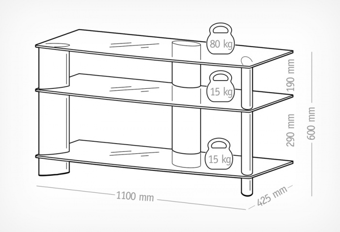 Тумба под аппаратуру Holder PL-18110 Алюминий+черн. стекло