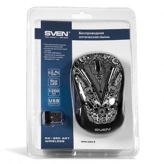 RX-360 Art Wireless от компании SVEN работает точно и четко на любой поверхности – за позиционирование мыши отвечает современный сенсор Blue Led.