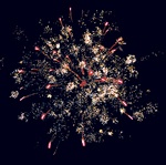 Золотая вертушка разрывается разноцветной сферой, цветные звезды разрываются золотыми хвостами с переходом в мерцание, цветными сферами, цветными сферами с мерцающими искристыми хвостами, белые звезды разрываются красными звездами с переходом в искристую трещащую сферу 20 - 25 сек., до 25 м.