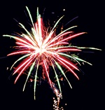 Трещащие кометы разрываются красным, синим, зеленым, мерцающим салютом. Красочная концовка: множество ярких белых разрывов с трещащими, мерцающими звездами 25 - 35 сек., до 30 м.