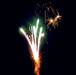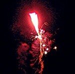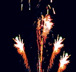 Разрывы синими, оранжевыми, трещащими звездами 35 - 45 сек., до 15 м.