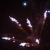 Эффект фейерверка: золотые кометы разрываются сферами из золотых искристых форсов, серебряные трассы разрываются сферами из серебряных искристых форсов.