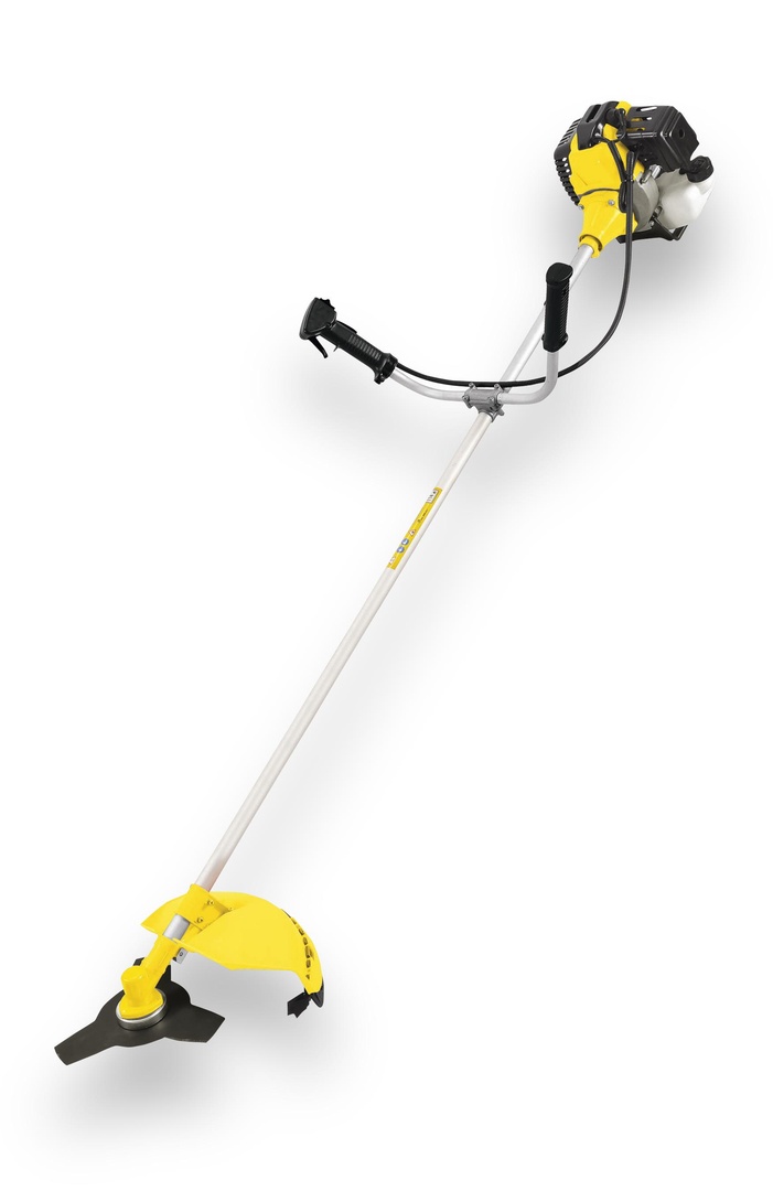 1200Вт, бак -1,2л, 2-х тактный двигатель, 2 насадки для кошения травы: леска (диаметр 2мм) и нож (длина 255мм), плечевой ремень