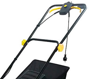 В газонокосилке Huter ELM-1800 предусмотрена защита от случайного включения двигателя: после каждого выключения автоматически срабатывает блокировка пускового рычага, и чтобы запустить двигатель нужно прежде нажать кнопку разблокировки. Органы управления расположены на ручке. Сама ручка по высоте не регулируется, но для большего удобства при хранении и транспортировке очень просто складывается.