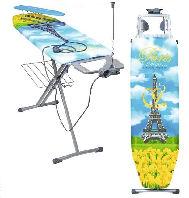 Стол - металл, подрукавник, подствавка под утюг (евро), полка для белья, электроудлинитель, кронштейн для провода, покрытие-тефлон.