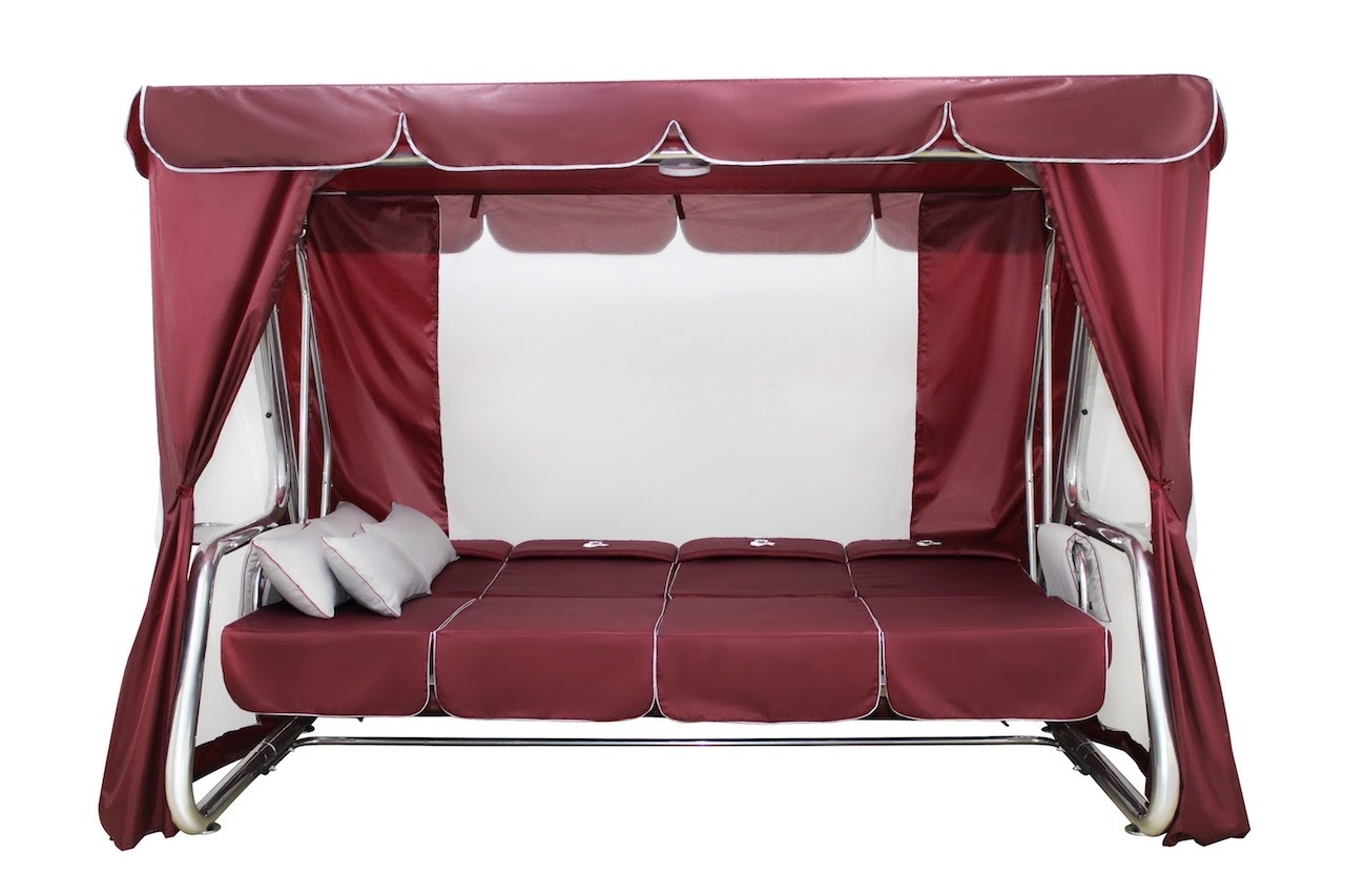 | Комплектация | 4 подушки-кресла с оборкой (увеличенная спинка, закругленный верх), 4 подголовника с вышивкой "МИШКИ", 2 мягких подлокотника, 4 дополнительные подушки, тент-шатер с антимоскитной сеткой, 2 подстаканника, 2 металлических тентодержателя, светодиодный фонарь |