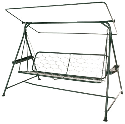 Качели укомплектованы тентом, защищающим от солнечных лучей (включая большую часть УФ-лучей) и небольшого дождя.