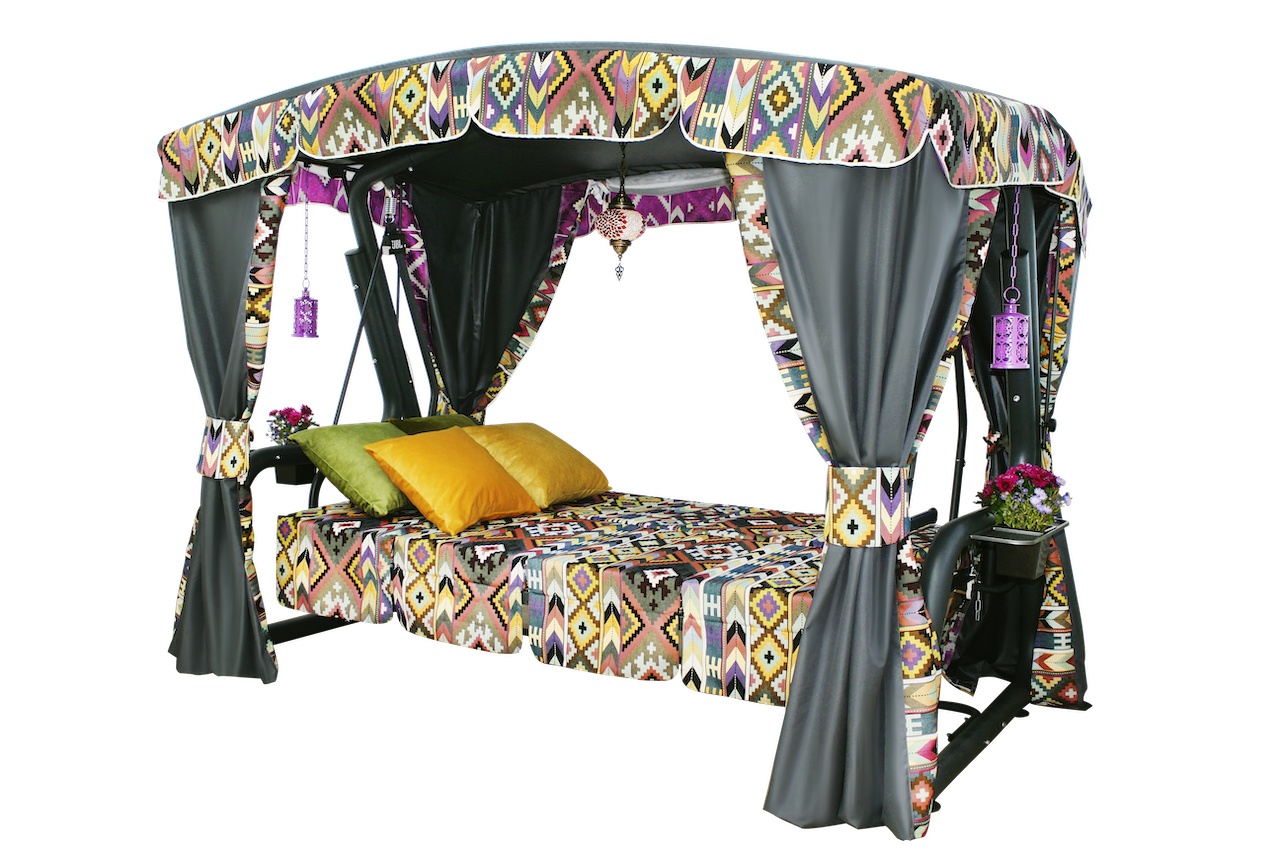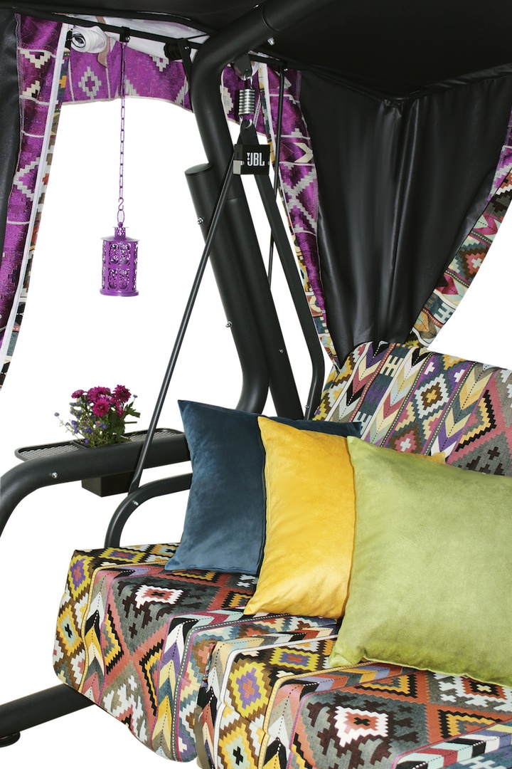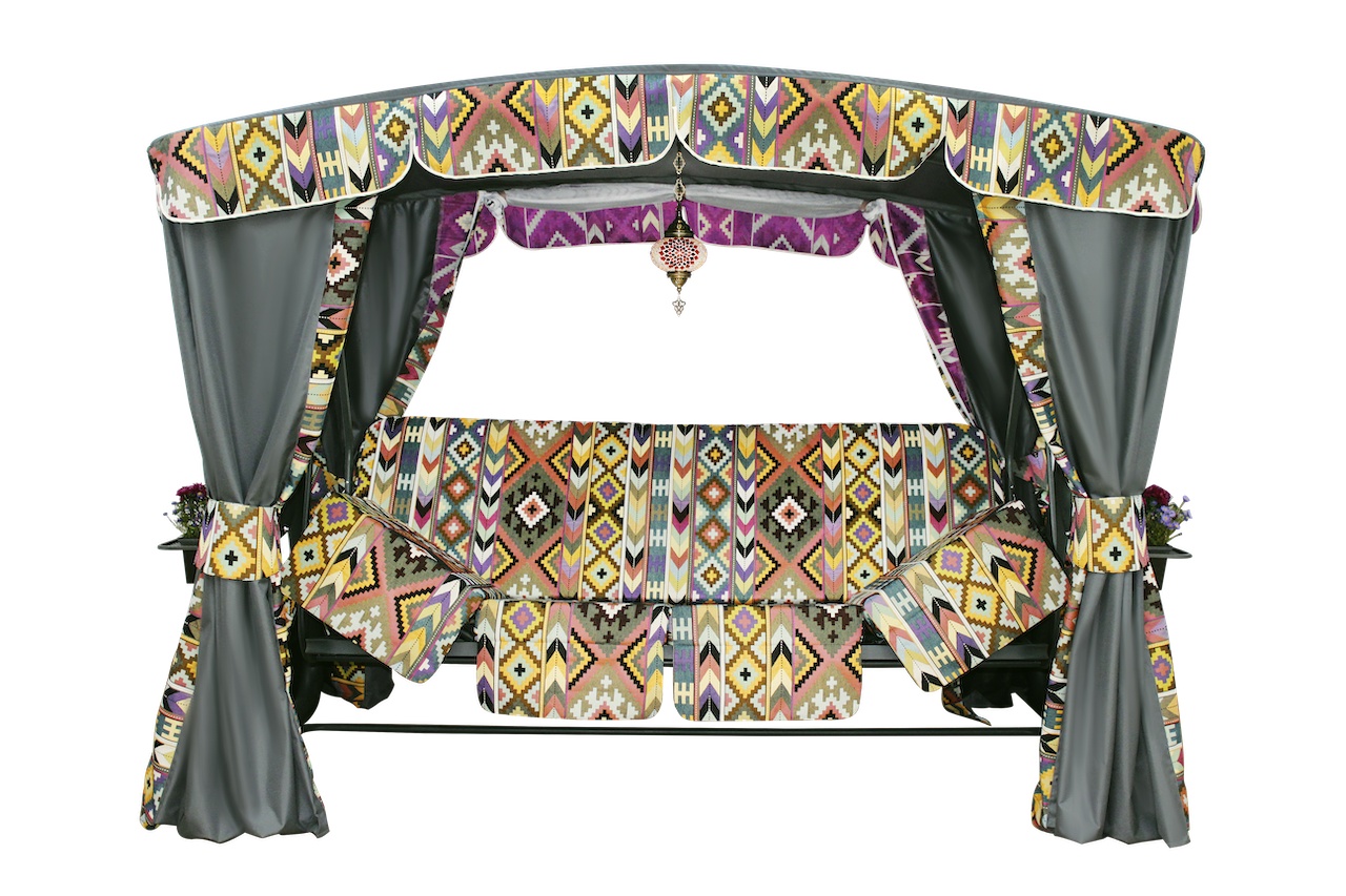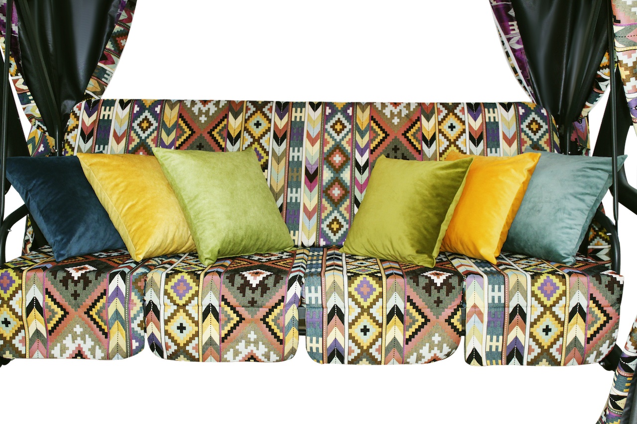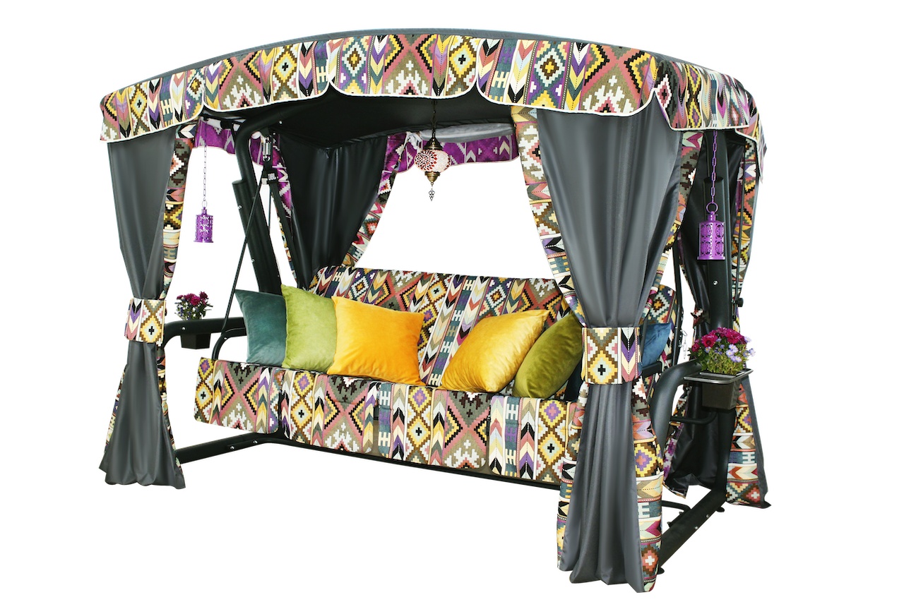 Садовые качели "Килим" - это модель, в которой богатый восточный колорит и изобилие цветов сочетаются с высокими эксплуатационными свойствами. Эксклюзивный дизайн в этническом стиле, который никогда не выходит из моды. Модель с ярким характером неизменно станет заметным акцентом и живописным украшением интерьера.