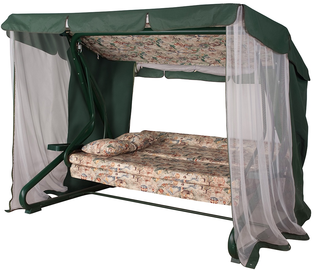 Угол наклона спинки регулируется пошагово, при этом качели можно разложить полностью на 180 градусов, превратив ее в комфортную двуспальную кровать.