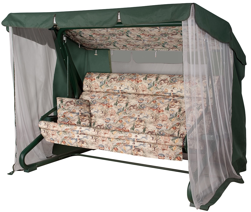 Чехлы мягких элементов снабжены молнией и легко снимаются для стирки. Модель комплектуется полиэфирным тентом с вшитой антимоскитной сеткой, защищающим от небольшого дождя и солнечных лучей (включая большую часть УФ-лучей).