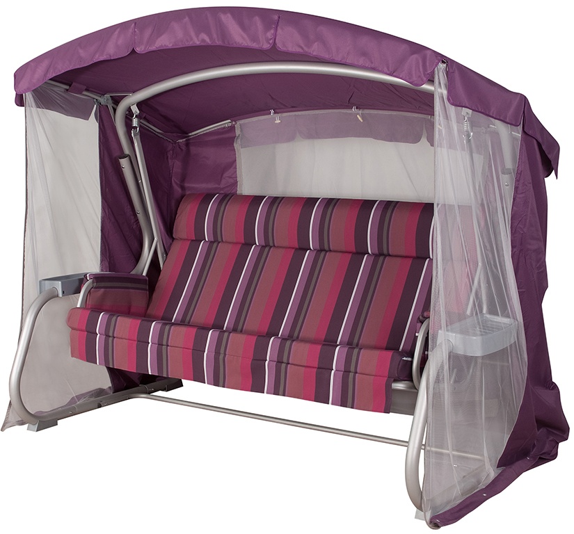 Чехлы мягких элементов снабжены молнией и легко снимаются для стирки. Модель комплектуется полиэфирным тентом с вшитой антимоскитной сеткой, защищающем от небольшого дождя и солнечных лучей (включая большую часть УФ-лучей).