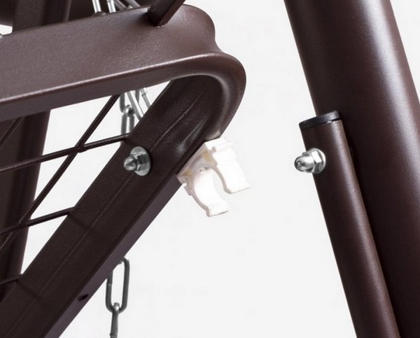 В состояние кровати спинка жестко крепится к задней перекладине с помощью фиксаторов.