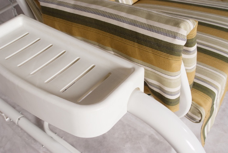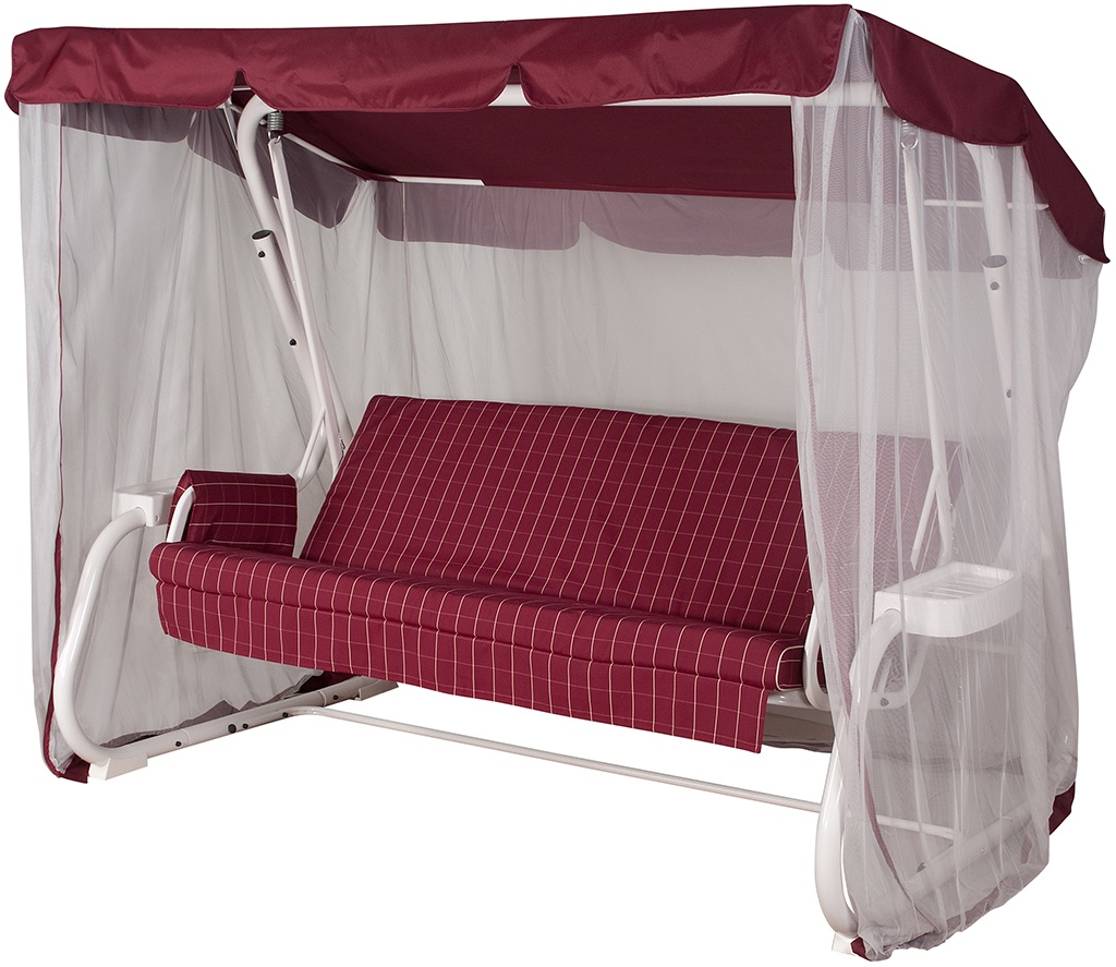 Дополнительно в комплекте поставляются подстаканники, тент, защищающий от дождя и солнца, а также москитная сетка, выполненная в едином с качелями стиле.
