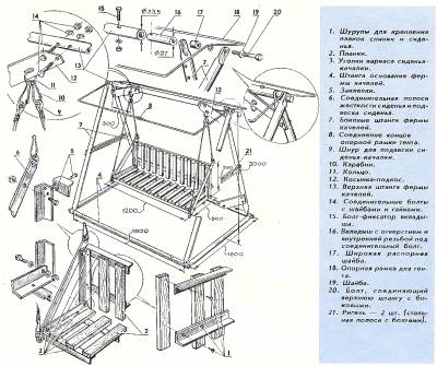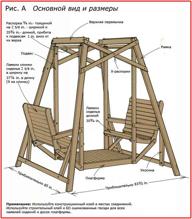 Размеры и «вместительность» качели продумывается перед ее изготовлением. Качели не надо делать слишком большими или маленькими. Самый оптимальный вариант до 2 м.