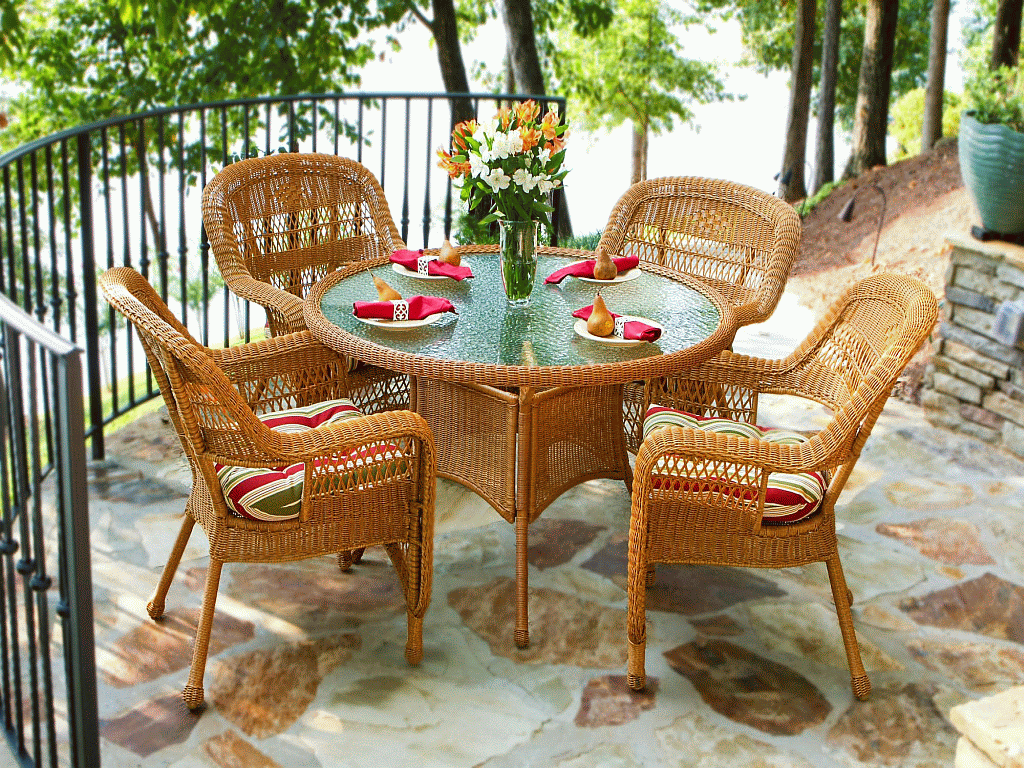 Каждое такое кресло или стул может по праву считаться произведением искусства. Помимо кресел и стульев, встречаются, также, и плетенные столы. Но такой стол должен иметь еще и дополнительное покрытие сверху. Лучше всего здесь подойдет стекло или другой прозрачный материал.