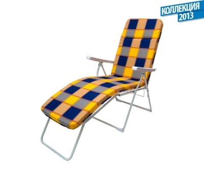 Каркас кресла изготовлен из стальной эл. сварной трубы с полимерным покрытием различных цветов. Мягкий элемент изготовлен из бязи набивной различных расцветок с наполнителем поролона листового. Угол наклона спинки регулируется ступенчато через 5 интервалов.
