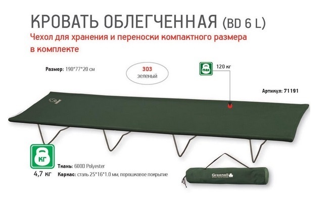 Извините, раскладушку Greenell BD-6 L облегченная переместили в архив