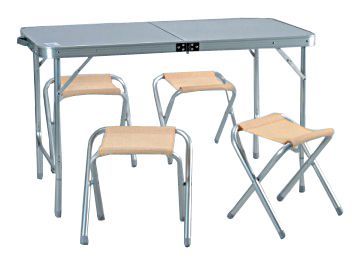 Набор мебели для пикника Green Glade 5102, включает в себя стол (складывающийся в чемодан) и четыре табурета.