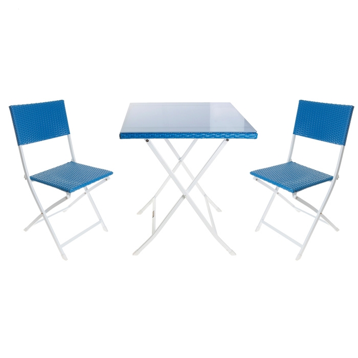 Набор мебели плетеной (стол 60х60х71 см, 2 стула 50х43х82 см), цвет голубой - это хорошее решение для интерьера по выгодной цене!
