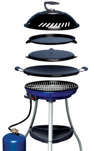 5 независимых поверхностей для приготовления: гриль-решетка, сковорода, антипригарный гриль с ребрами, антипригарная плита-гриль, горелка, чехол-сумка,используется только с многоразовым баллоном.