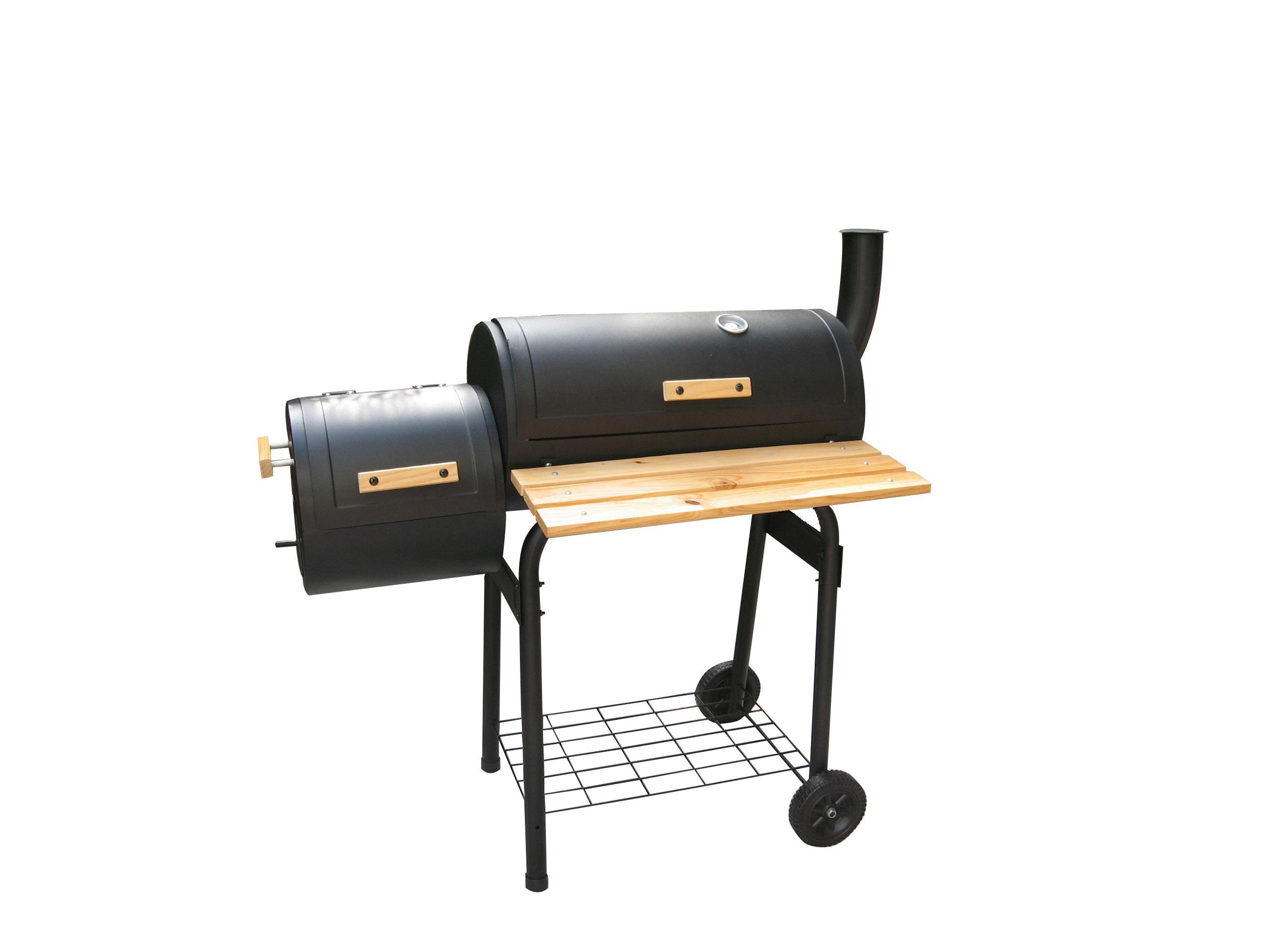 Гриль-коптильня, отдельная топка для копчения, на колесах, с двумя полками, термостат.