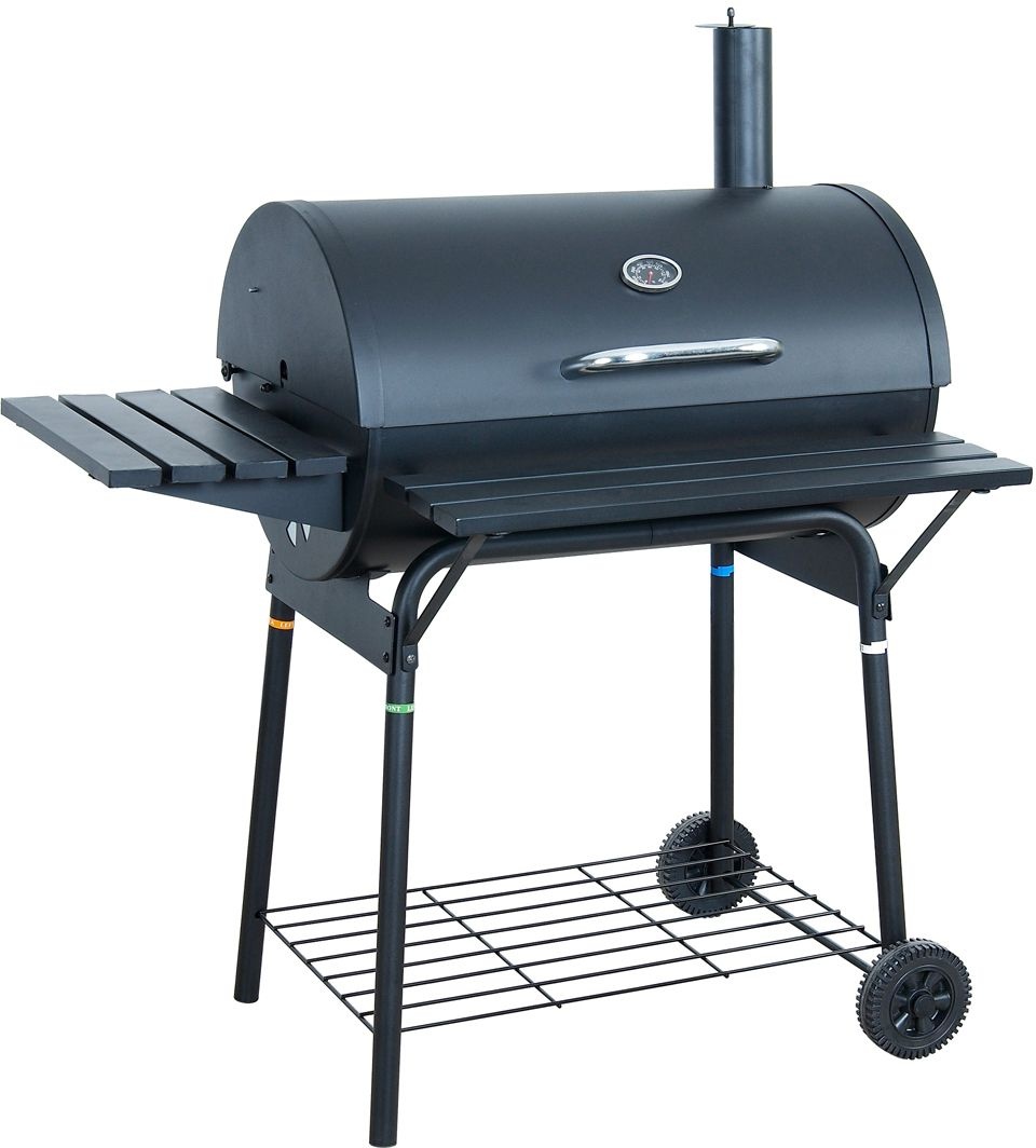 Гриль-барбекю с функцией коптильни Green Glade 11100 имеет три дополнительные удобные полочки и одну вместительную жарочную поверхность. Для удобного перемещения по территории гриль оснащен парой колес.