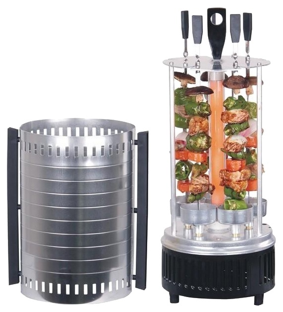 Данная модель занимает мало места и проста в использовании. Электрошашлычница Jarkoff JK-KG10 оснащена вращающимися шампурами, которые обеспечивают равномерность приготовления пищи и вам не придется постоянно поворачивать шашлык!