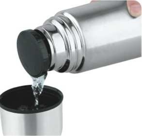 Укомплектован глухой пробкой с каналами для налива в полузакрытом состоянии, особая конструкция которой позволяет наливать жидкость, не откручивая пробку полностью. Это уменьшает потерю температуры при эксплуатации.